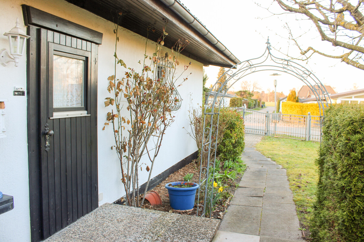 Der Bungalow selbst liegt in einer verkehrsberuhigten Straße.
